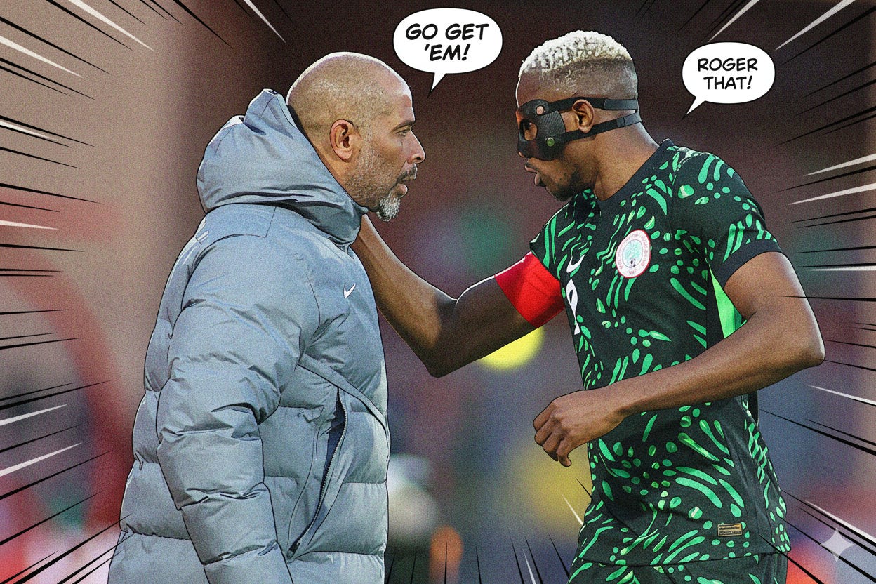 A year on, and two matches away from winning the AFCON, it is safe to say the Franco-Malian has leaned hard, the dogs of war unleashed as, from the touchline, he cries ‘Havoc’ again and again. His reward – and that of millions of Super Eagles fans – has been some of the most sublime football a Nigeria national team has ever produced, the OLA front three interested, not in niceties, but only in loot and pillage. To describe it in words almost feels like a disservice; this team is a thing to be experienced, to be enjoyed not just with the eyes but with sharp intakes of breath and involuntary exhalations.